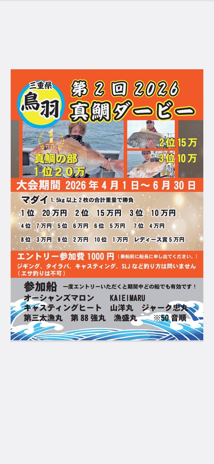4月1日より第二回真鯛ダービー始まります(^^)