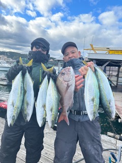 ポツポツ程度でしたが、ワラサ、ハマチ、真鯛と顔は見れました^ ^
