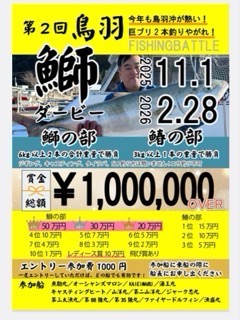 第2回鳥羽鰤ダービー12月31日までの暫定順位です!